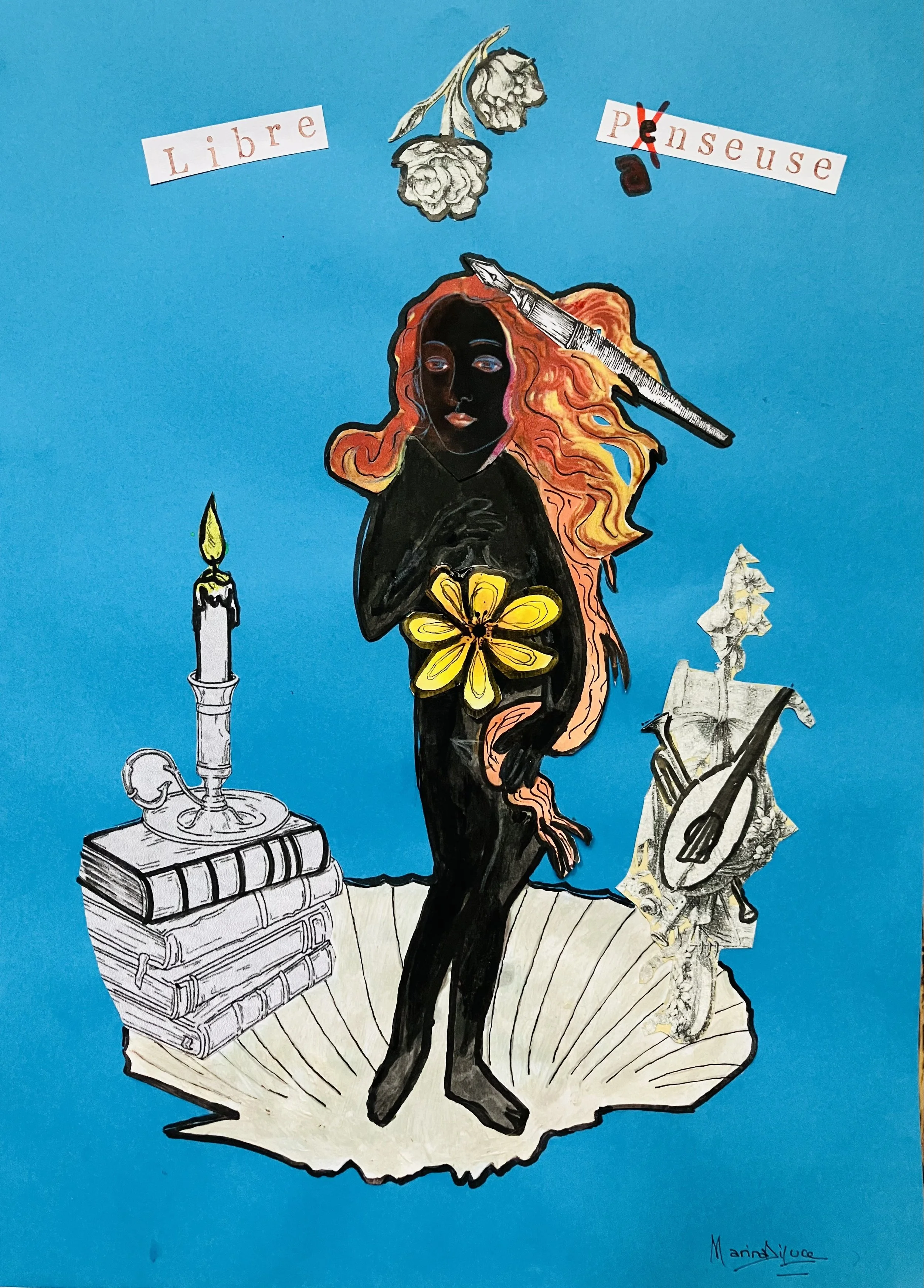 "Libre penseuse/panseuse", the birth of Venus revisited, Collage on paper