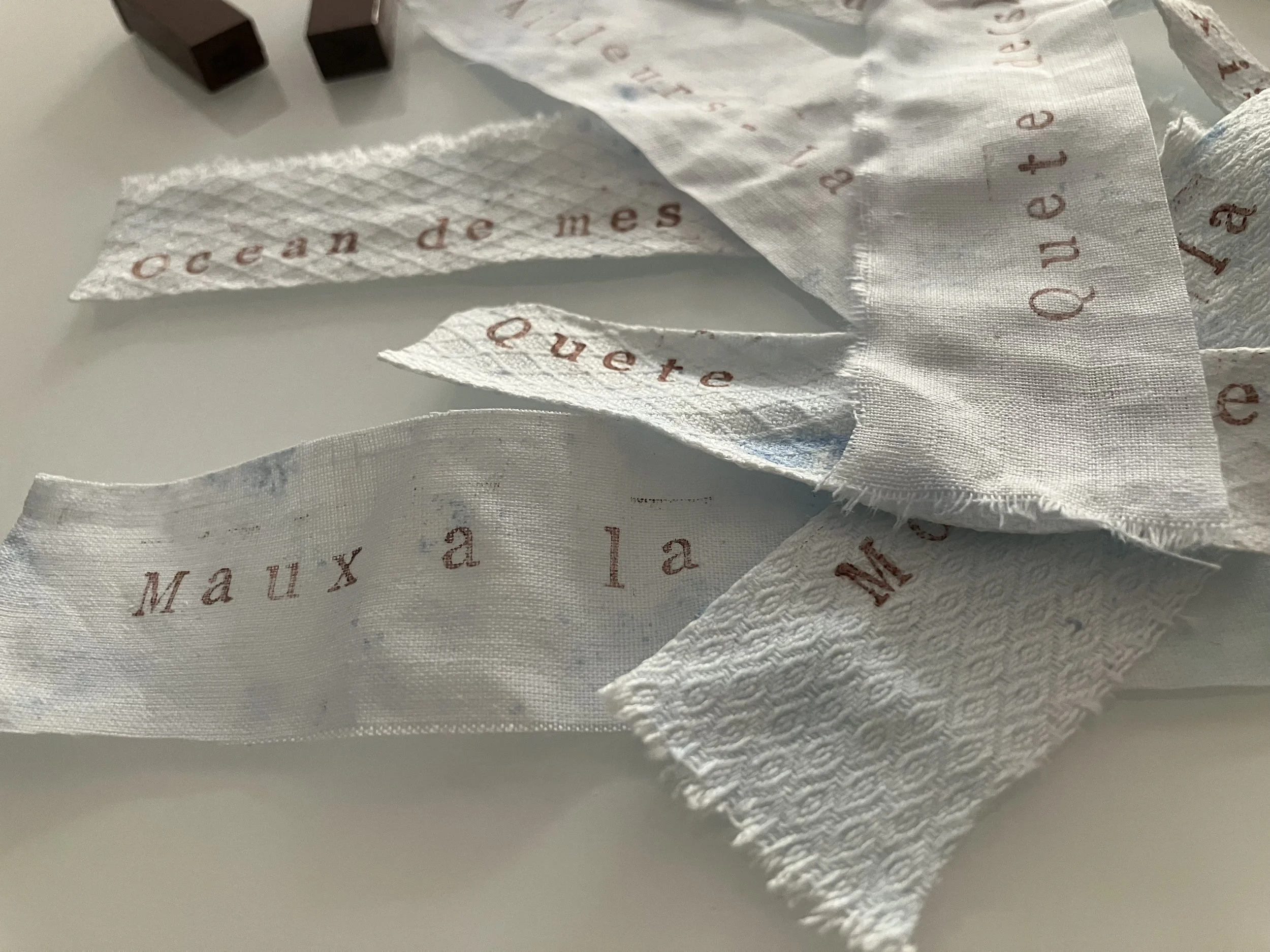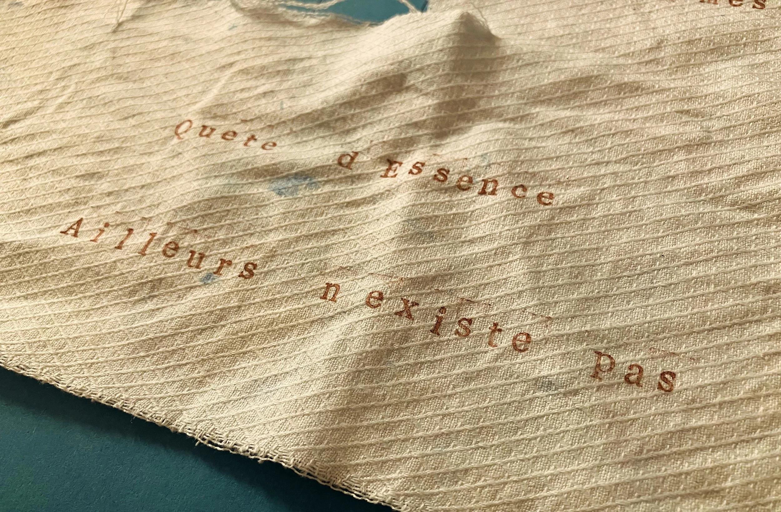 This assemblages of textile could be a to do list with various post-its, a life list, a shopping list, etc. It presents various words in different languages.